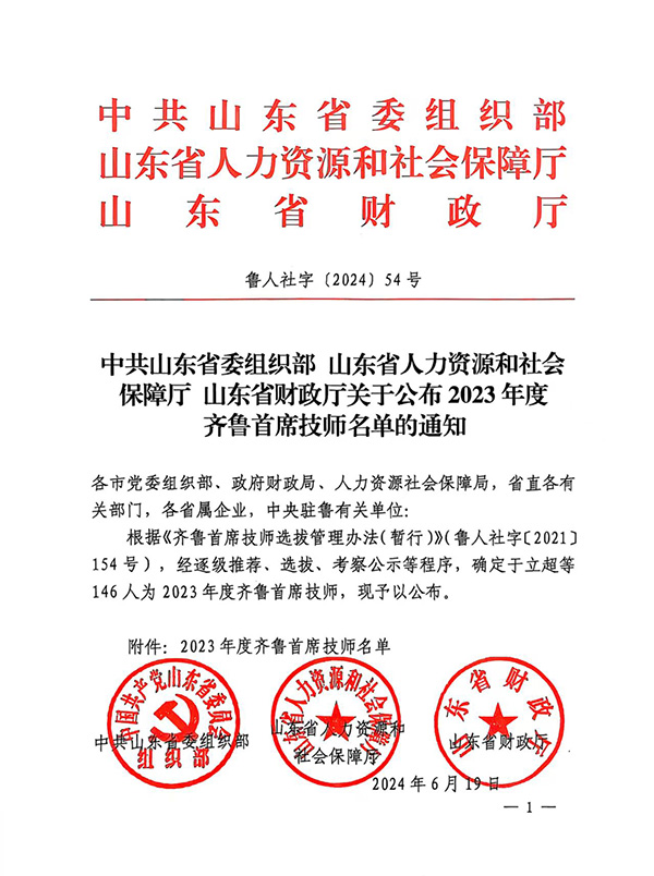 山东省财政厅关于公布2023年度齐鲁首席技师名单